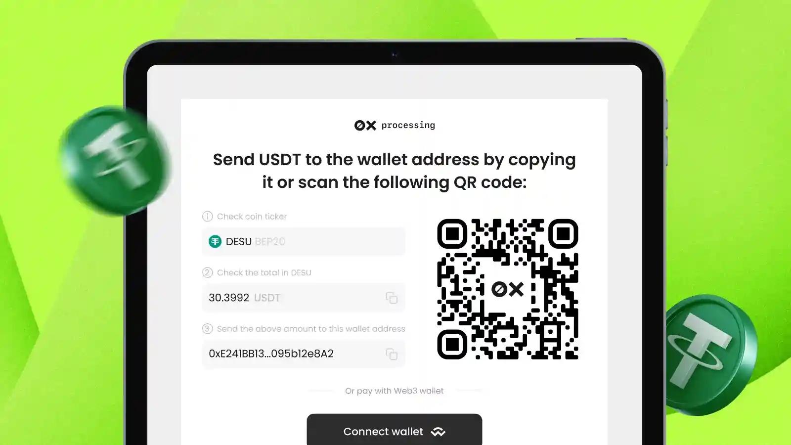 You can easily accept USDT payments on your website or business using 0xProcessing.